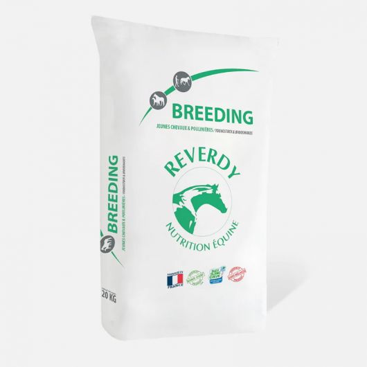 L'aliment Reverdy Breeding est un granulé de haute technicité spécifiquement formulé pour répondre aux besoins exigeants des poulinières, des étalons et des jeunes chevaux en croissance.