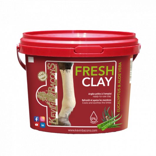 L'argile prête à l'emploi Fresh Clay Kevin Bacon's est une argile de très haute qualité enrichie avec de l'Eucalyptus et de l' Aloé Vera idéale pour offrir un moment rafraîchissant aux membres de votre cheval.