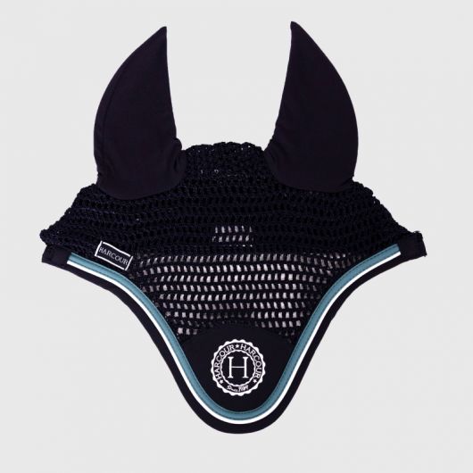 Un bonnet anti-mouches aux couleurs élégantes permettant de protéger votre cheval des insectes volants pendant travail.