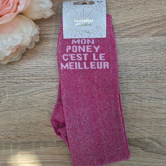 Chaussettes à paillettes équitation - Mon poney c'est le meilleur - Paillettes Attitude