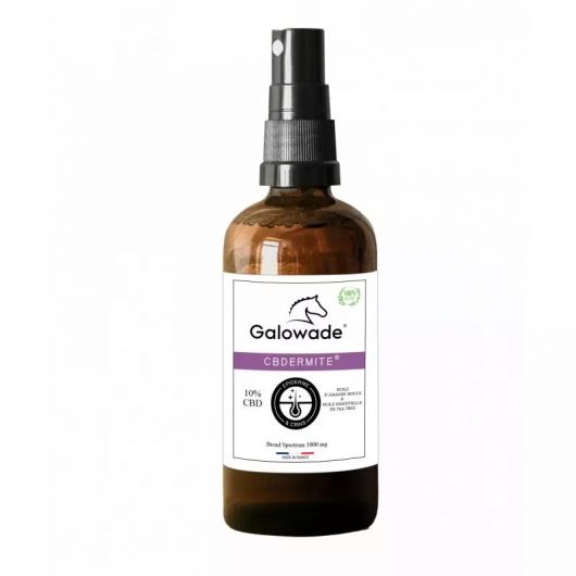 100% naturelle et fabriquée au sein d'un laboratoire française, l'huile apaisante CBDERMITE 10% Galowade est spécialement développée pour apaiser les démangeaisons, les zones sensibles ou irritées de la peau du cheval.