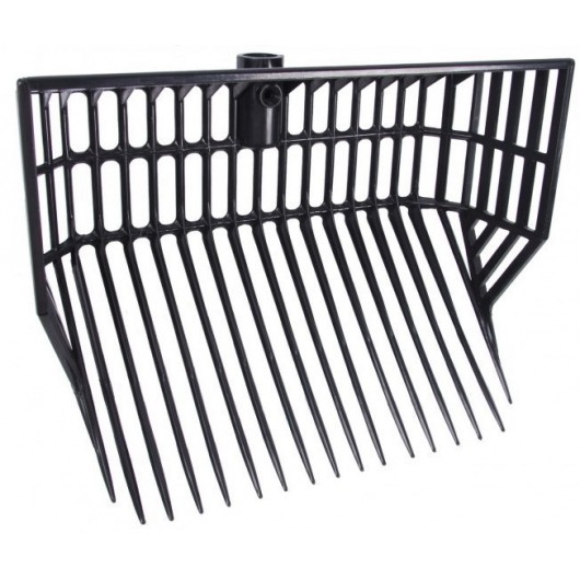 Cette tête de fourche en résine de 15 dents possède des côtés extra hauts et légèrement courbes afin de retirer litière et copeaux souillés. La longueur de ses dents permet un curage optimal.