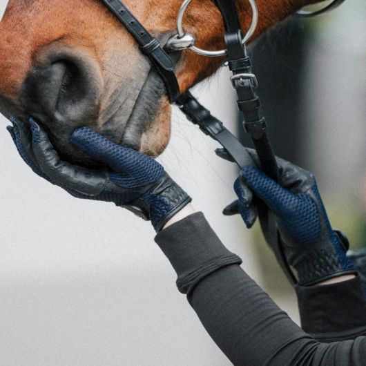 Les gants d’équitation sportif Nantes Elt possède une combinaison de matières : cuir synthétique et tissu mesh en nid d’abeille